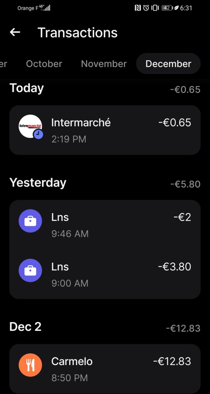 Sur des applications comme Revolut, les dépenses et retraits sont visibles instantanément dès lors que vous passez en caisse (voir ci-dessous).