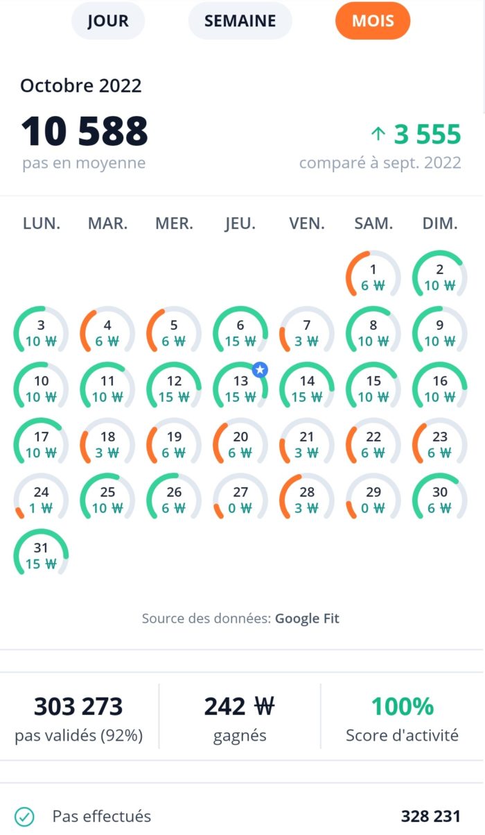 Pour vous aider à y voir plus clair, 12 000 pas, soit environ 8 kilomètres, permettent de remporter environ 10 wards, ce qui représente 0,07 centime d’euro.