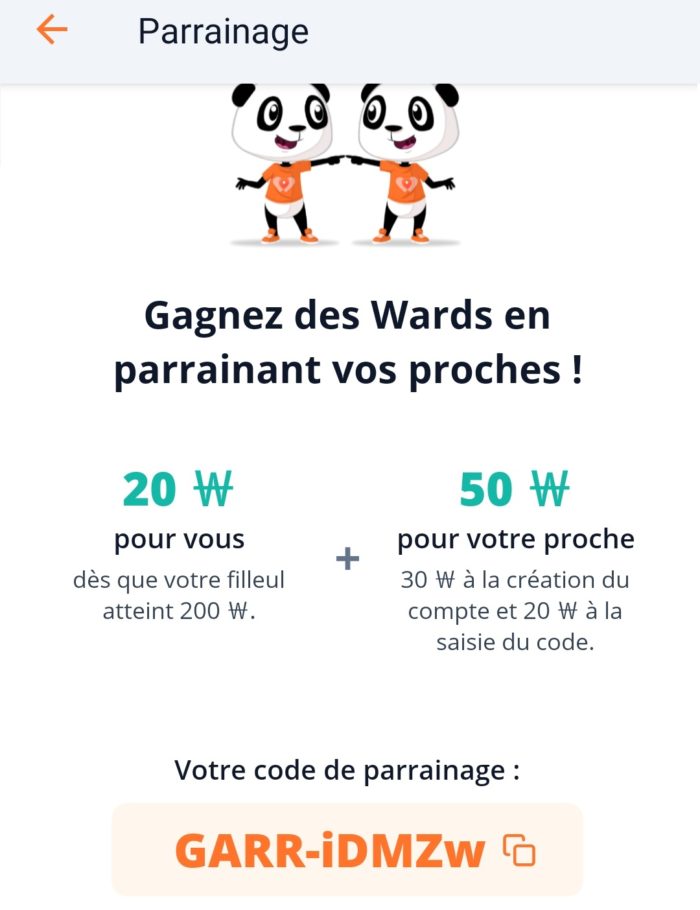 Démarrer avec 70 Wards directement dans votre cagnotte grâce à mon code de parrainage: GARR-iDMZw