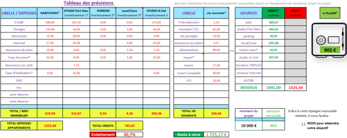 Continuez ainsi jusqu’à retrouver l’équilibre dans votre tableau. L’idéal, c’est que vos revenus deviennent supérieurs à vos dépenses. Vous pourrez mieux vous y retrouver , et garder ainsi une marge de manœuvre pour les imprévues: factures, accident de la vie, soins dentaires, etc…